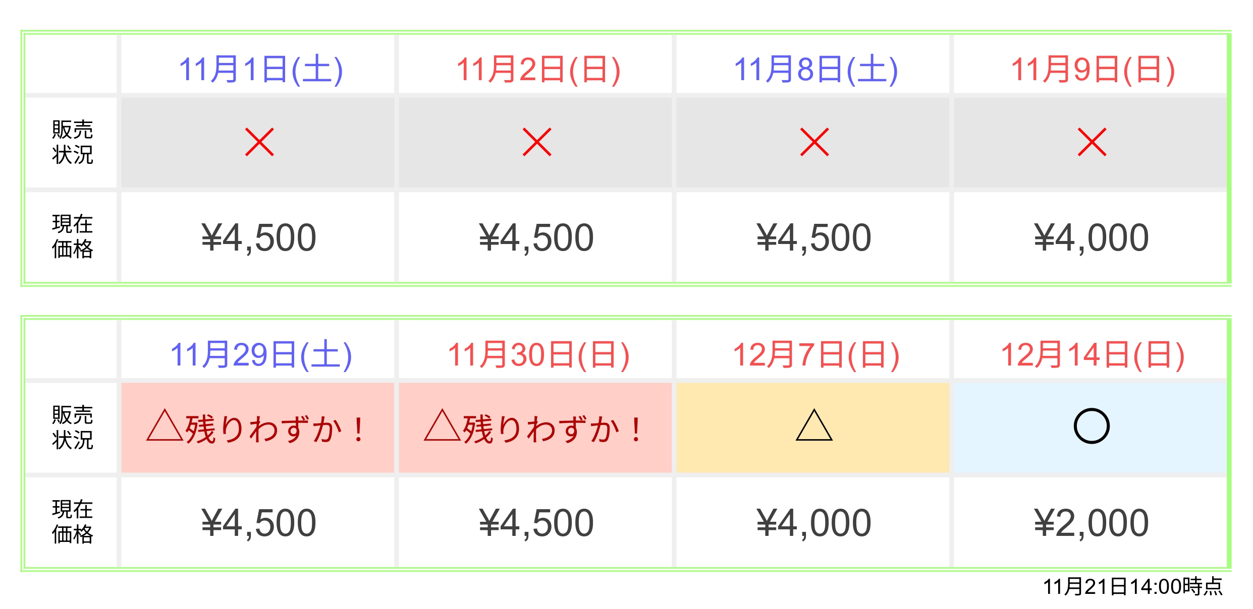 前売券状況カレンダー