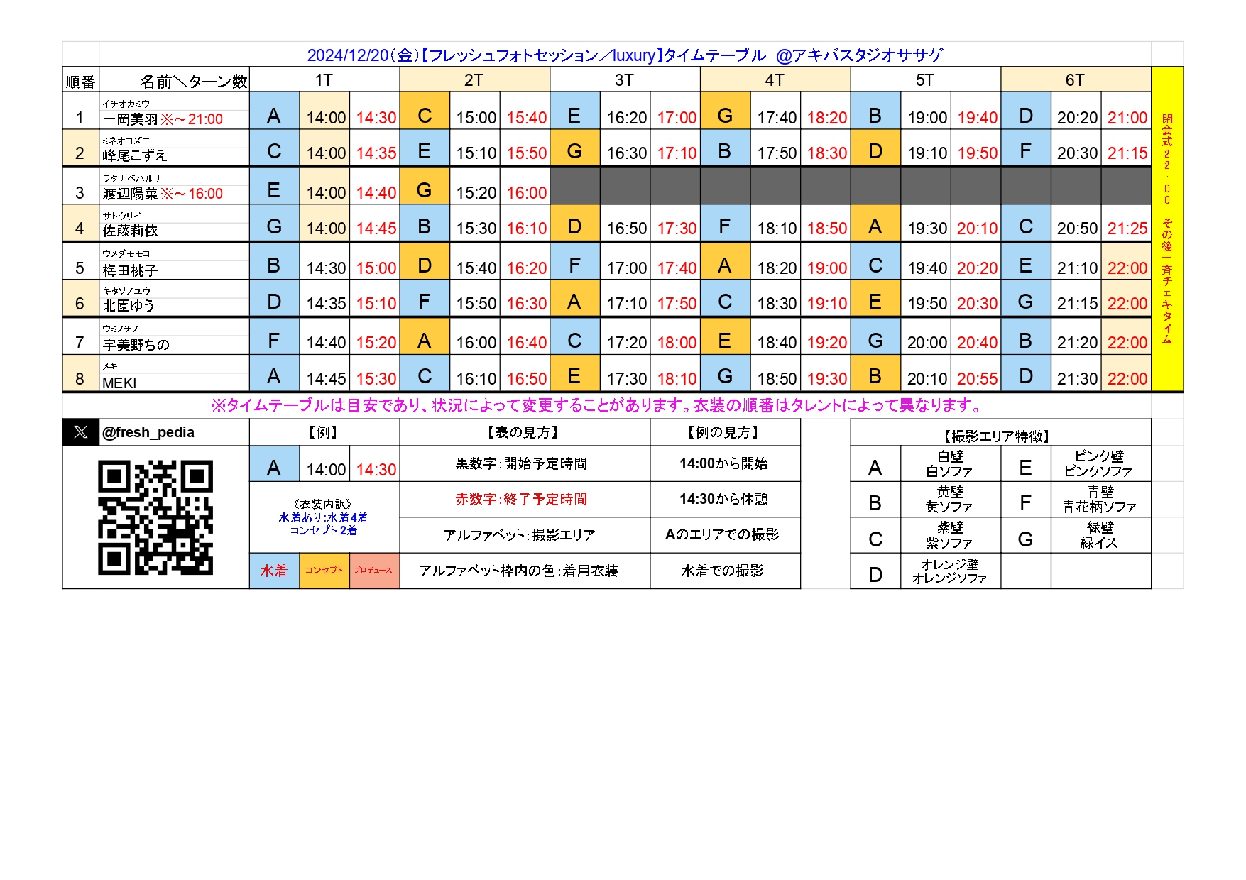 フレッシュ撮影会 スケジュール
