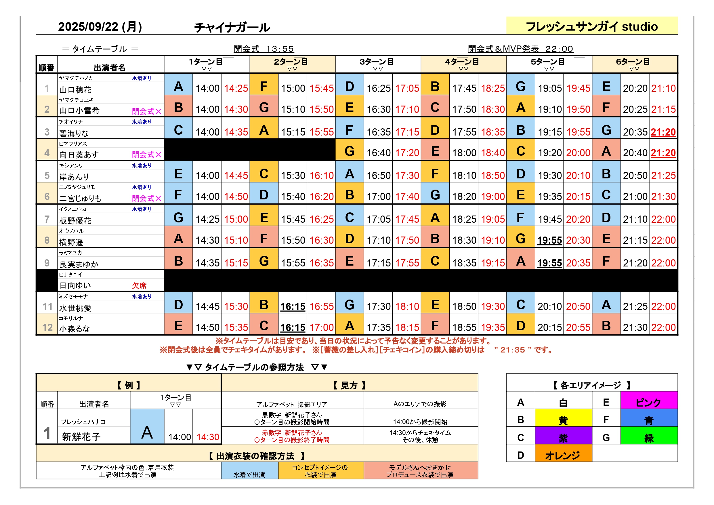 衣装の順番はタレントによって異なりますのでご注意ください。
