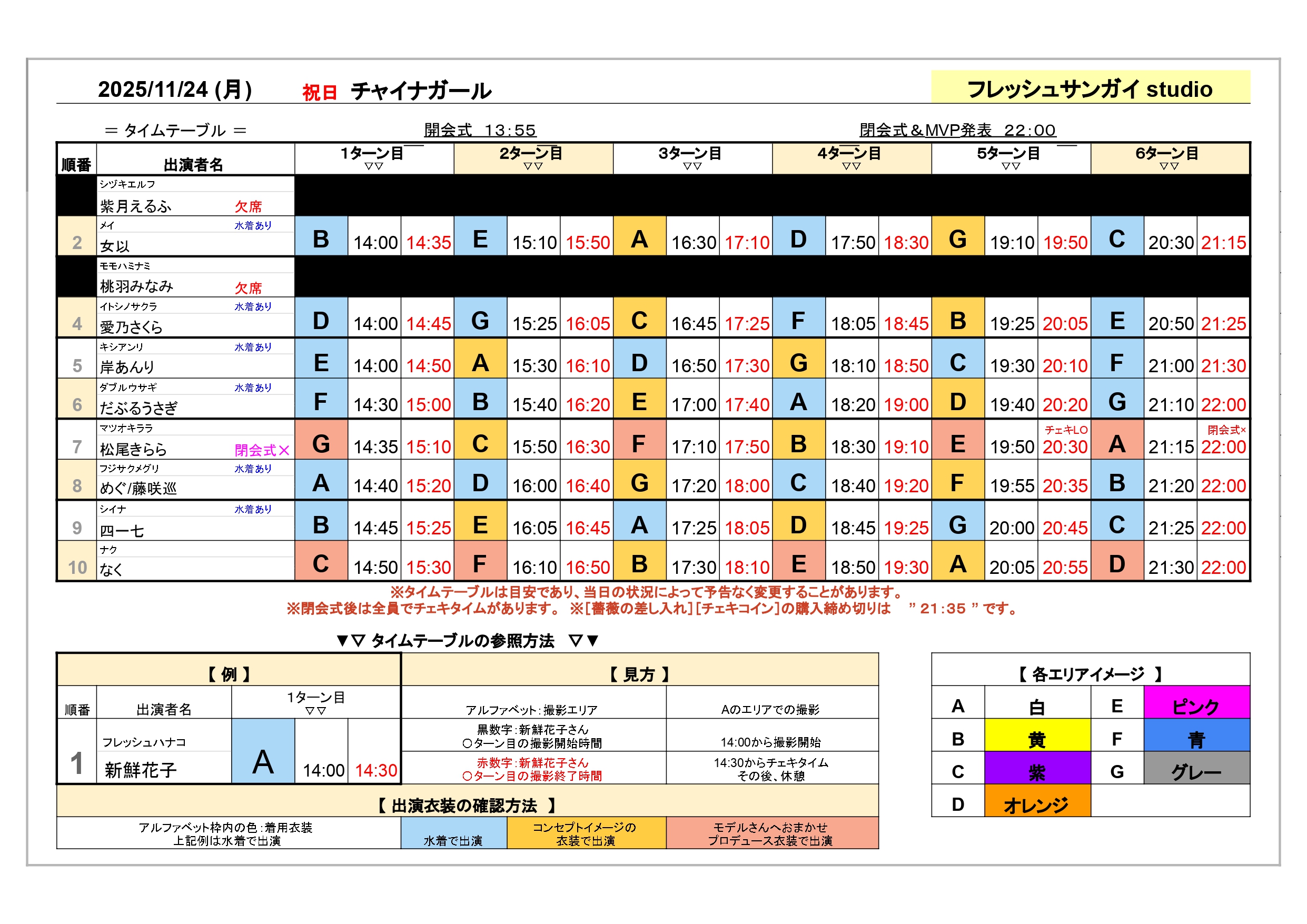 衣装の順番はタレントによって異なりますのでご注意ください。
