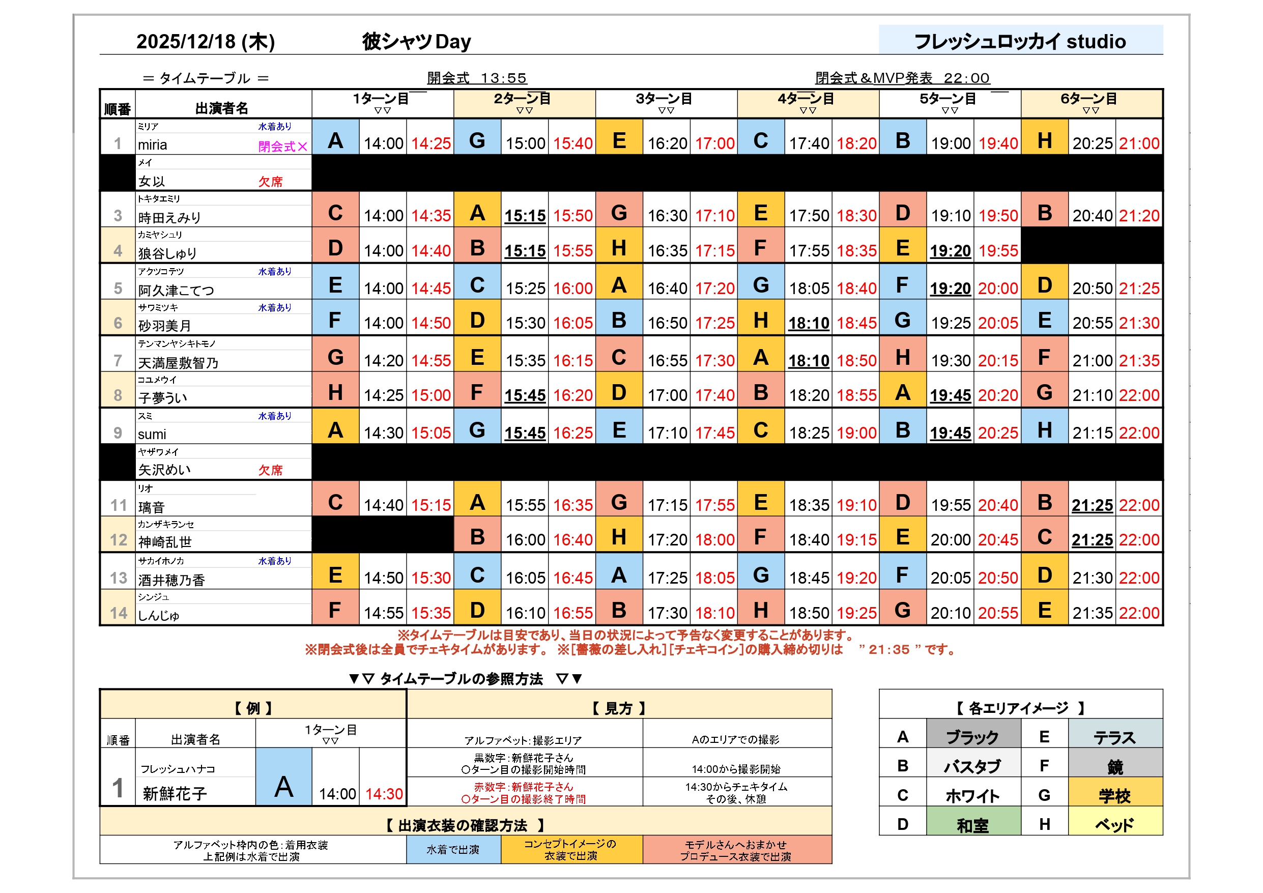衣装の順番はタレントによって異なりますのでご注意ください。