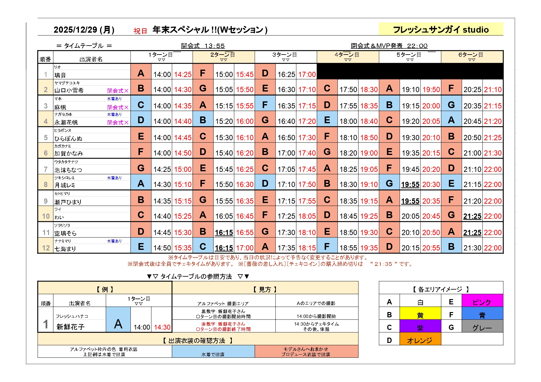 衣装は、「水着あり」のタレントは水着4着、タレントプロデュースによる衣装2着の計6着。その他のタレントはタレントプロデュースによる衣装6着となります。