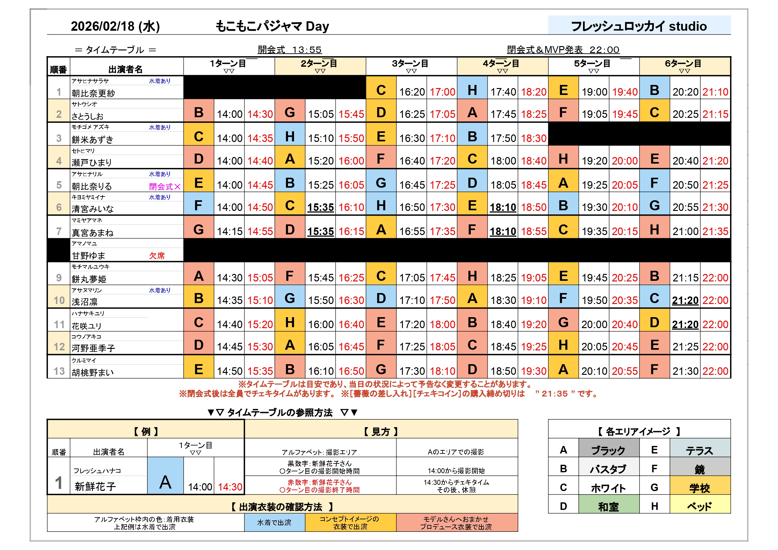 衣装の順番はタレントによって異なりますのでご注意ください。