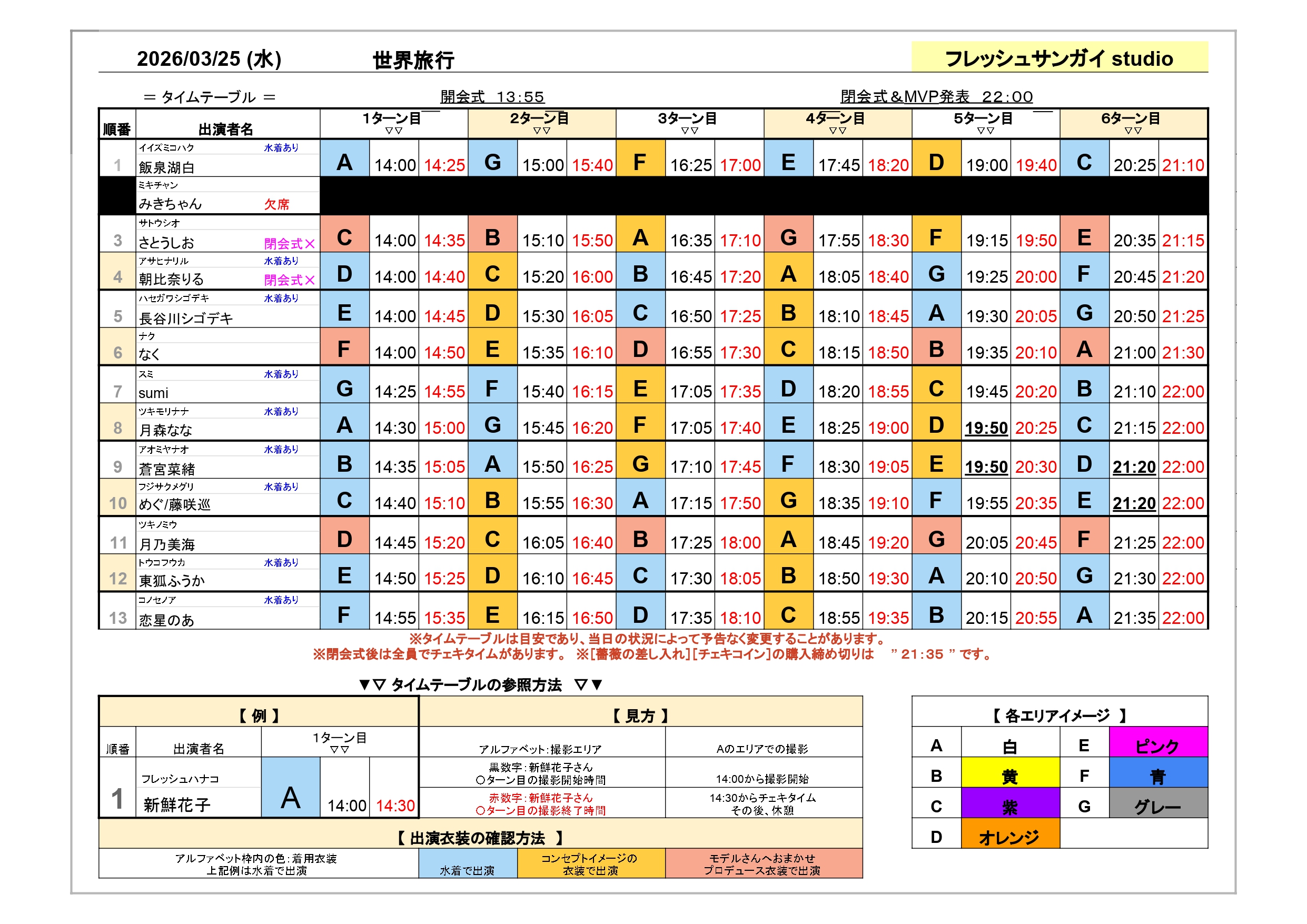 フレッシュ撮影会 スケジュール