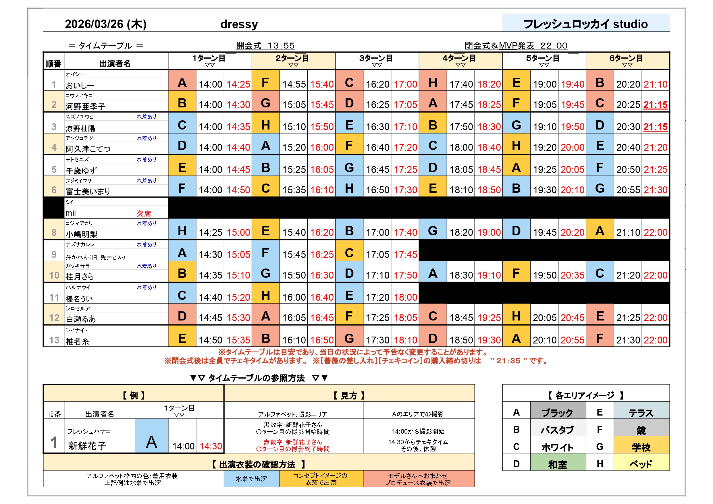 フレッシュ撮影会 スケジュール