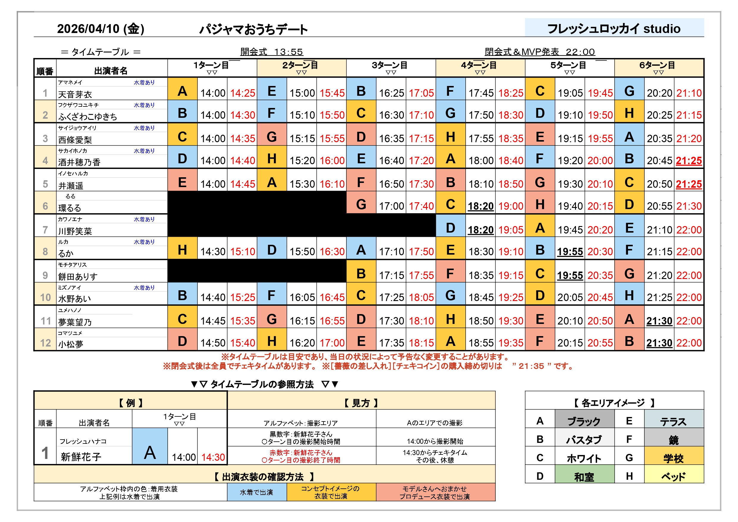 衣装の順番はタレントによって異なりますのでご注意ください。