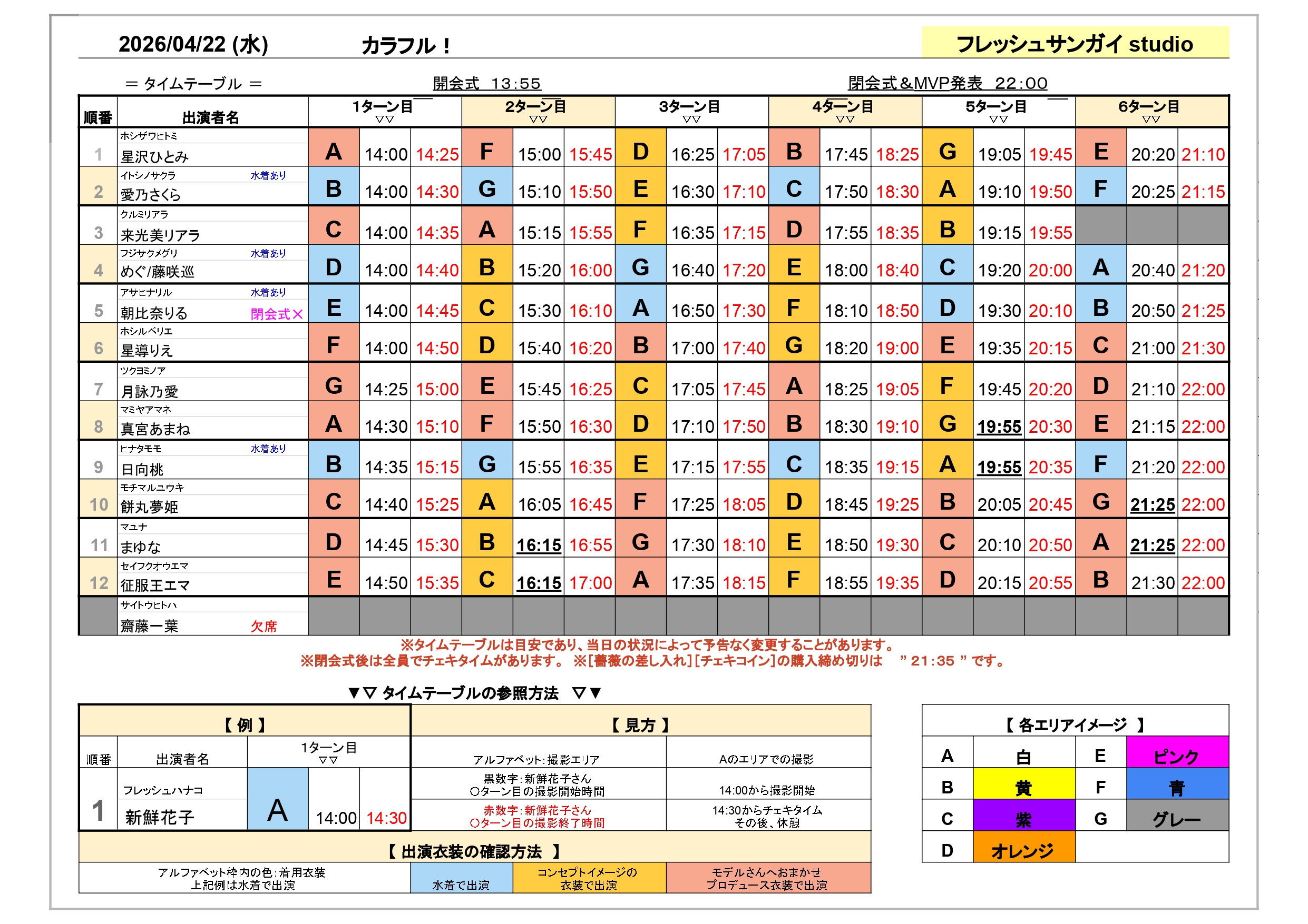 フレッシュ撮影会 スケジュール
