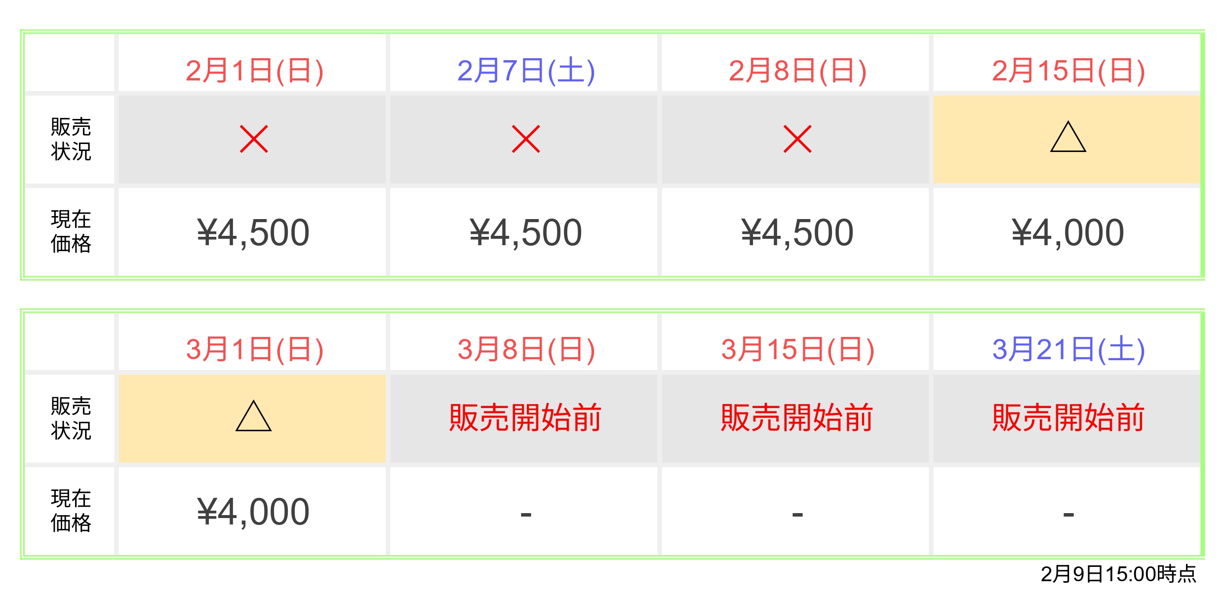 前売券状況カレンダー
