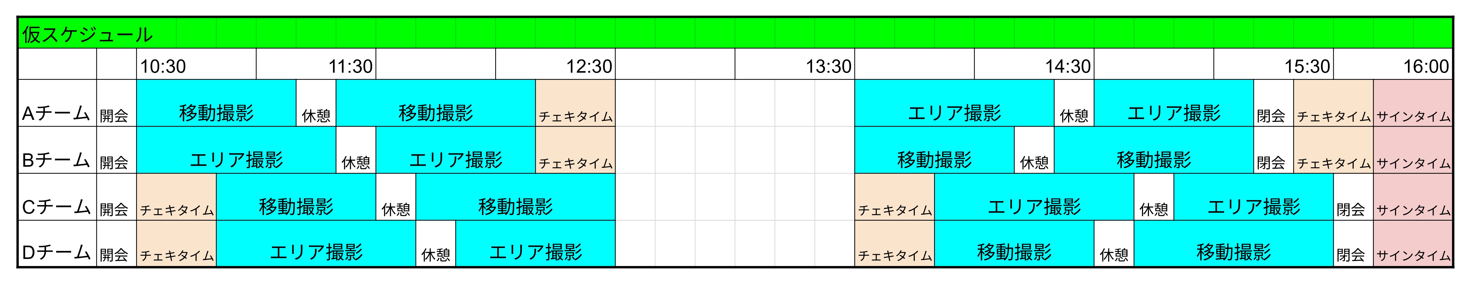 ※当日の状況に応じて、”チーム毎””時間毎”に撮影場所が変更となる場合ございます。