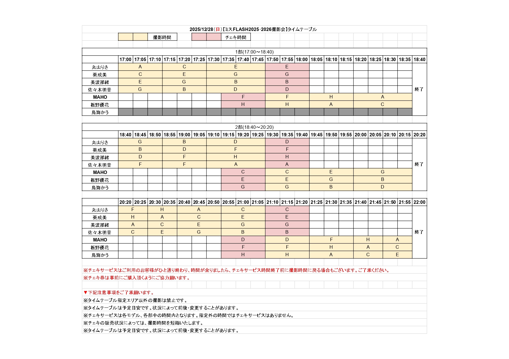 [各部内訳]各モデル撮影50分チェキタイム15分