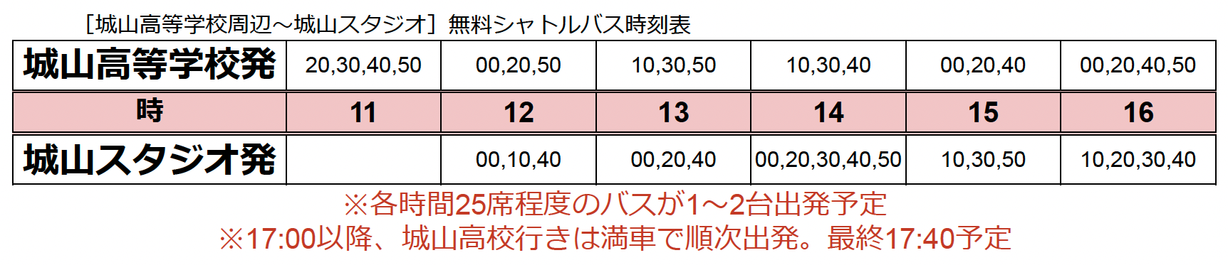 ※バス停【城山高校前】の対向車線側に停車予定ですが、当日の状況で変更となる場合がございます。