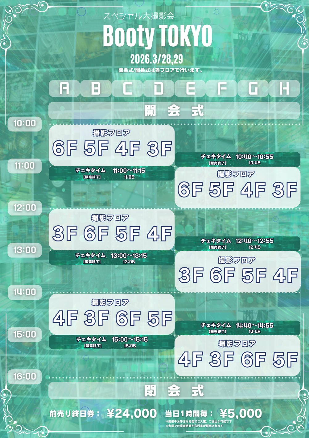 ・混雑緩和のため、物販券は事前購入を推奨しております。 ・購入後の内容変更や返金はできません。 ・受付開始と同時に、全時間帯分の物販券を販売します。 ・特筆がない限り、購入枚数制限はありません。 ・撮影は各フロアのスタッフ指定エリアで行います。 ・物販券をお持ちの方は、指定時間内にスタッフへお声掛けください。 ・モデルの顔が映らない撮影は禁止です。 ・動画データの取り扱いは、利用規約上[画像]と同様とします。 ・お客様によるソロチェキ撮影は不可です。 ・お客様からのポージング指示禁止 ・お客様からの接触行為は一切禁止。 ・衣装により出演者が上着を着用する場合があります。 ・サインタイム中の撮影は禁止。 ・各チェキタイムはサイン含め最大20分程度を予定しています。滞在予定時間には余裕を持ってご参加ください。 ・状況により、販売上限を超えた追加販売を行う場合があります(案内は該当フロアでのみ実施)。 ・一度サインを開始したモデルは、サイン終了後に撮影を再開します。その際、サイン不可となる場合もあります。 ・出演者準備の状況により、順番が前後する場合があります。 ・メッセージ動画は、チェキやサインを優先させていただく場合があります。事前にリクエスト内容をご準備してお待ちください。